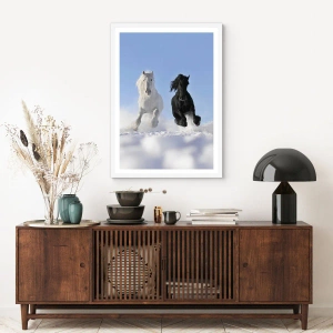 Plakát v bílém rámu - Černo-bílý cval - 70x100 cm