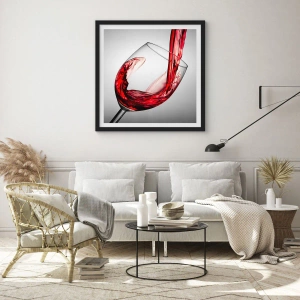 Plakát v černém rámu - Červené víno nalévané do sklenice - 50x70cm - Barva - pohyb - zvuk - Moderní nástěnná dekorace do obývacího pokoje a ložnice ARTTOR