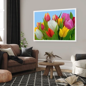 Plakát - Květinová duha v kapkách rosy - 50x40 cm
