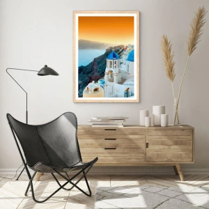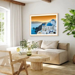 Plakát v rámu světlý dub - Santorini - přitulené ke skalám - 61x91 cm