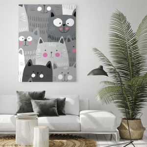 Nástěnný obraz - Kočičí svět - Zábavné kočky v šedých barvách na bílém pozadí