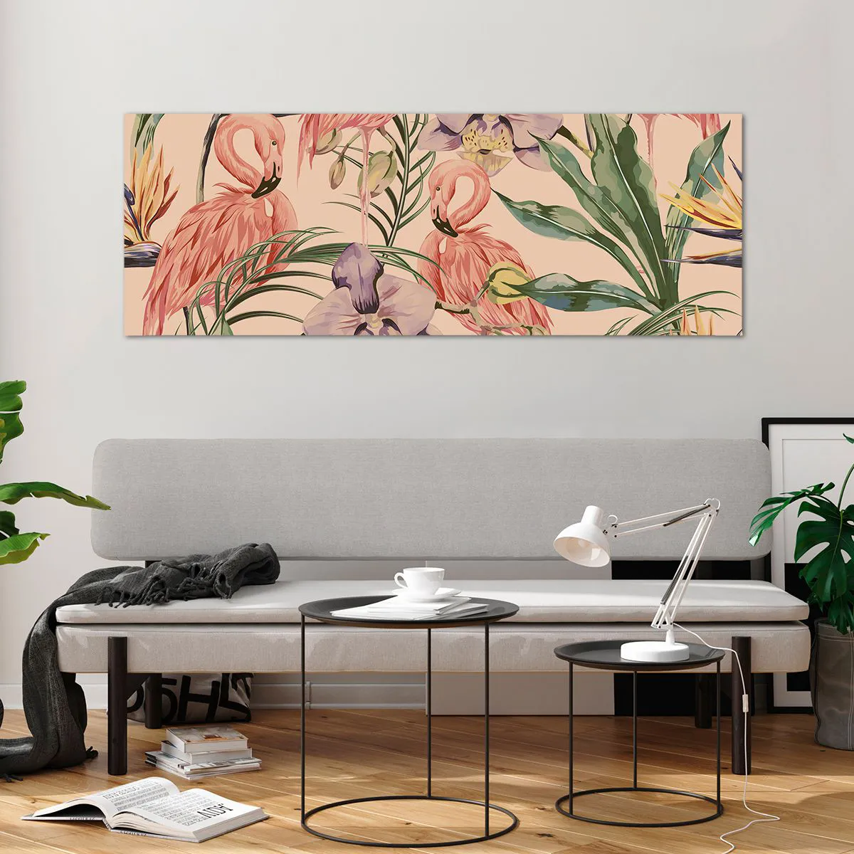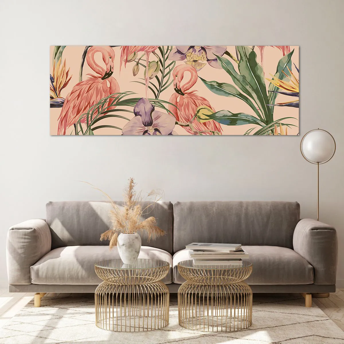 Obraz na skle - Růžový balet v květech - 140x50 cm