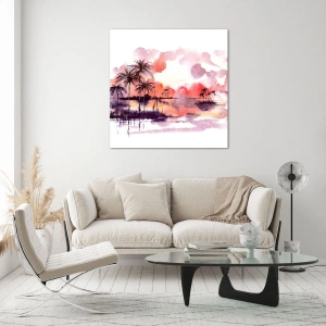 Obraz na skle - Klid tropů v červené - 50x70 cm