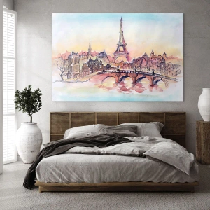 • město, Eiffelova věž, Paříž, Architektura, města, mosty, pastel, cestování, Do kanceláře, Do pracovny, Do jídelny, Do předsíně, Do obývacího pokoje, Do ložnice, Modrá, Růžová, Svislý