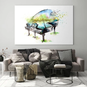 Nástěnné umění - Okouzleni hudbou - Akvarel klavíru obklopeného přírodou