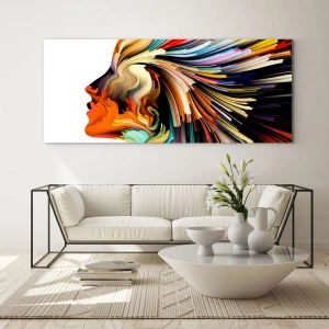 • Abstraktní silueta lidské tváře v explozi barev. Dokonalá dekorace pro ty, kteří hledají energické a umělecké ztvárnění.