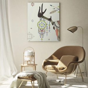 - Tento obraz zobrazuje symbolické rohy zdobené indiánskými vzory a ornamenty na světlém pozadí. Je to perfektní volba pro milovníky etnických a boho stylů.