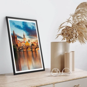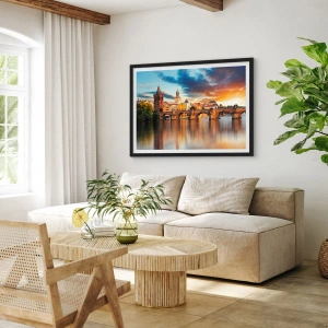 Plakát v černém rámu - Karlův most v Praze při západu slunce - 50x70cm - Krásná od pradávna - Moderní nástěnná dekorace do obývacího pokoje a ložnice ARTTOR
