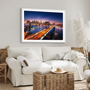 Plakát v bílém rámu - Zářící most do srdce města - 100x70 cm