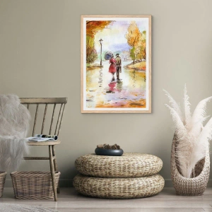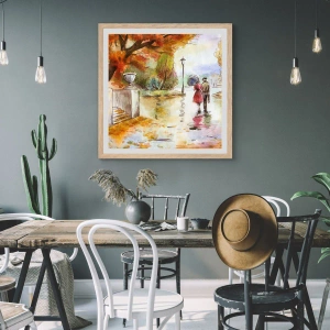 Plakát v rámu světlý dub - Romantický podzim v parku - 50x50 cm