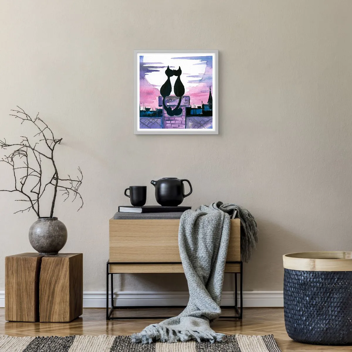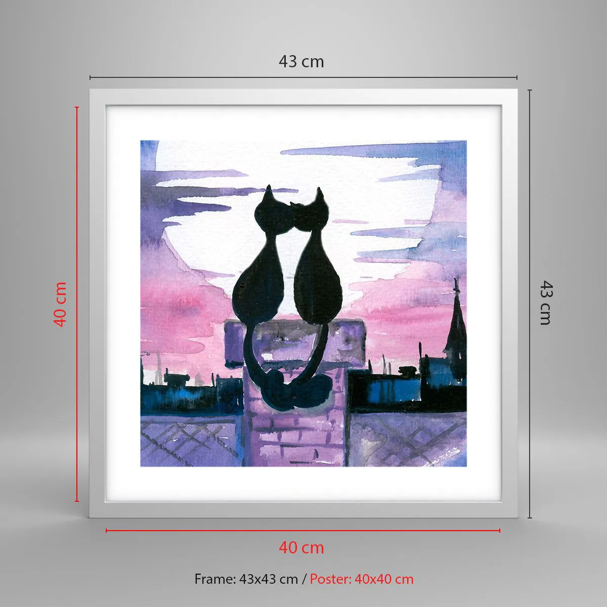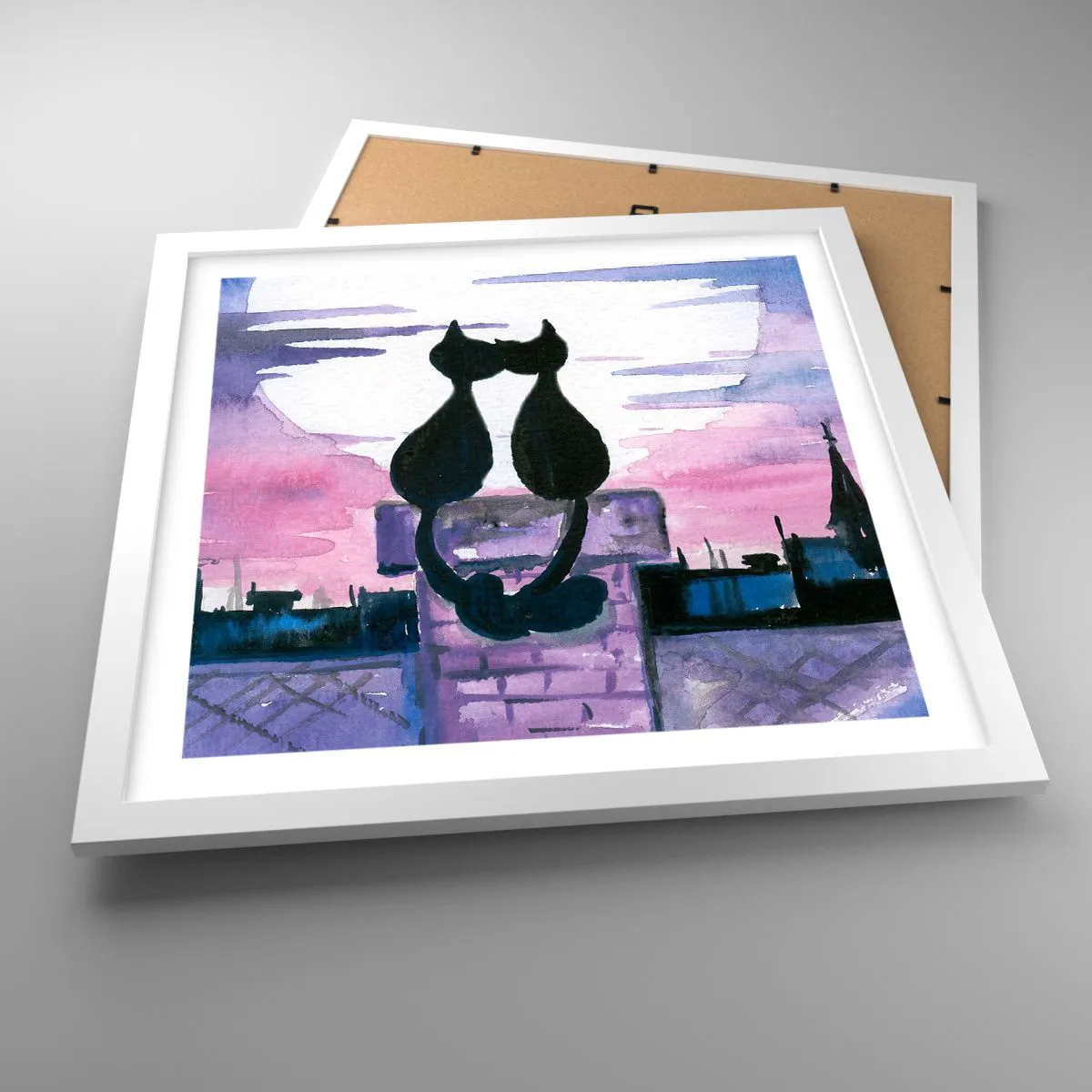 Plakát v bílém rámu - Rendez-vous pod měsíčkem - 40x40 cm