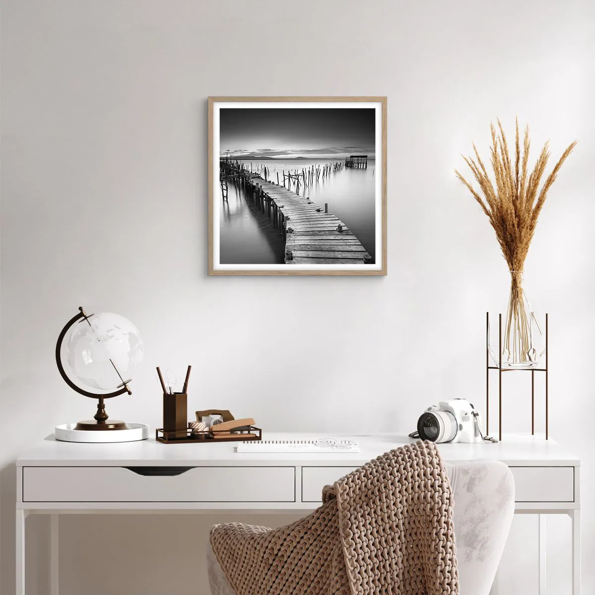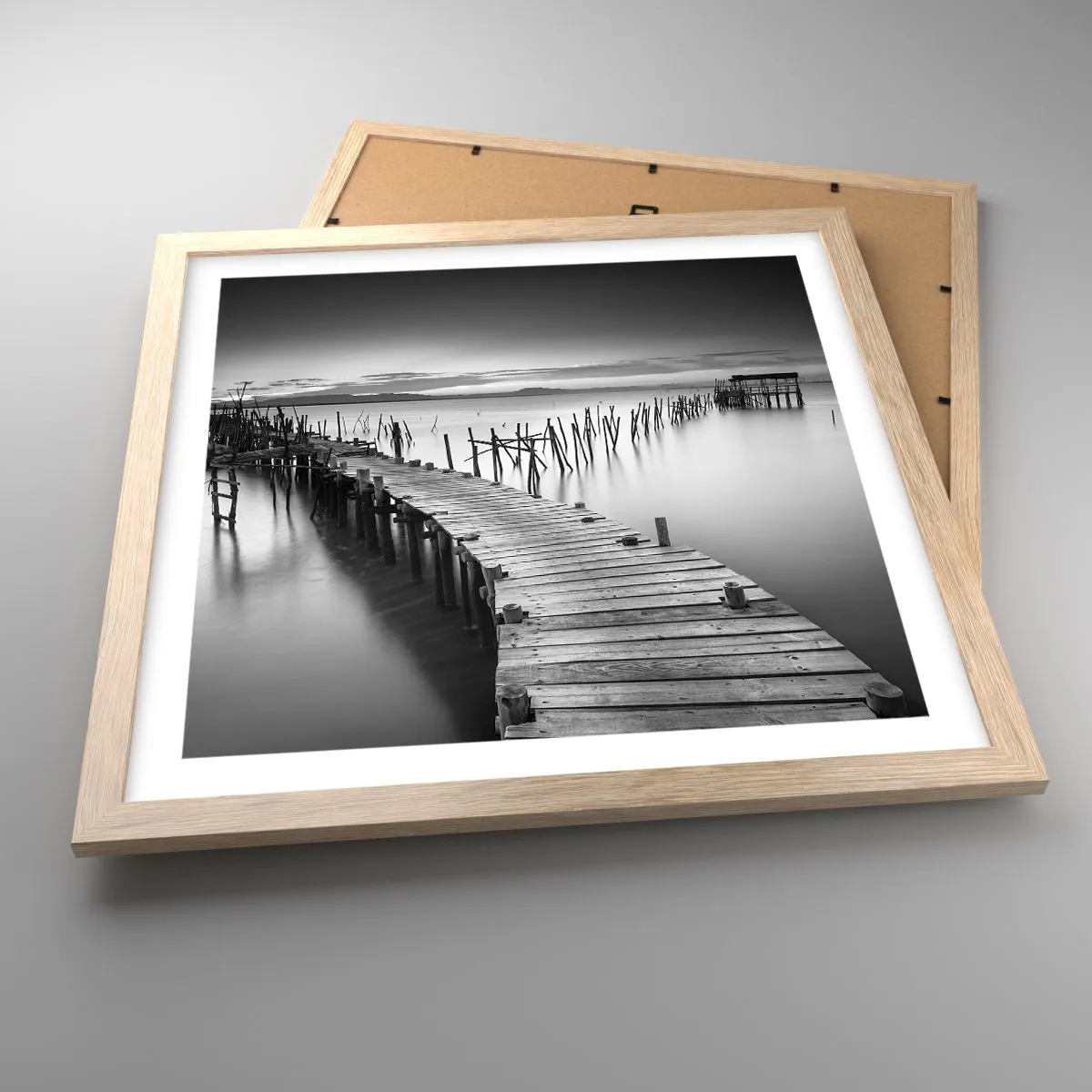 Plakát v rámu světlý dub - Klid zapomenutého břehu - 40x40 cm
