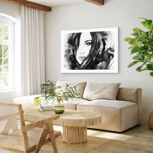 Plakát v bílém rámu - Portrét dámy v černé a bílé - 50x70 cm