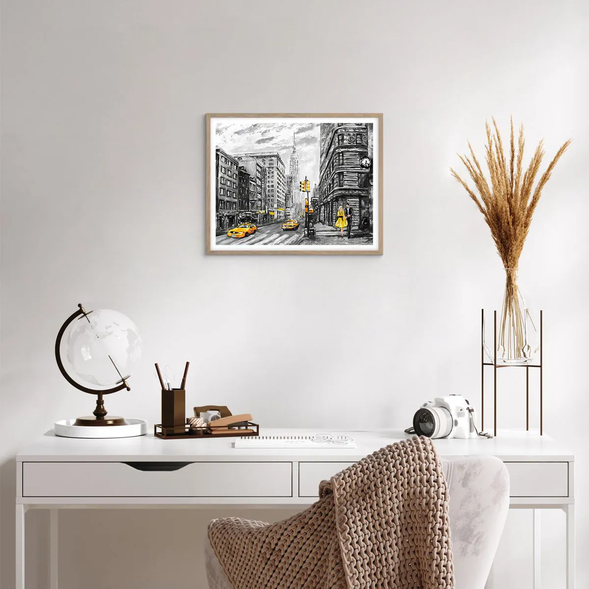 Plakát v rámu světlý dub - Newyorský příběh - 50x40 cm
