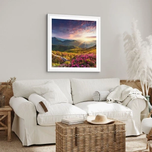 Plakát v bílém rámu - Svěžest horského rána - 70x100 cm