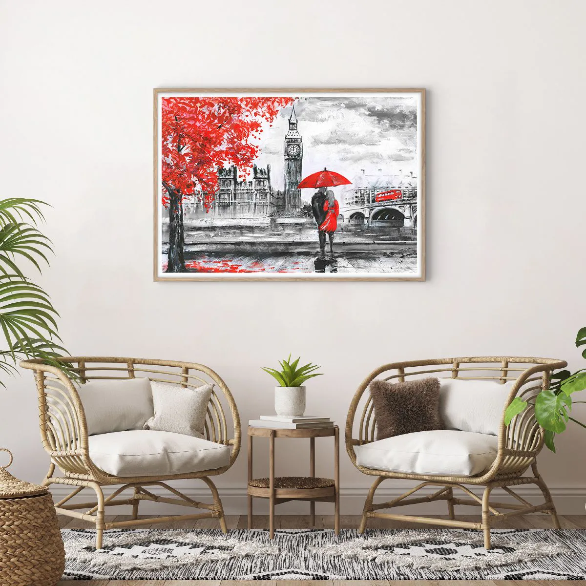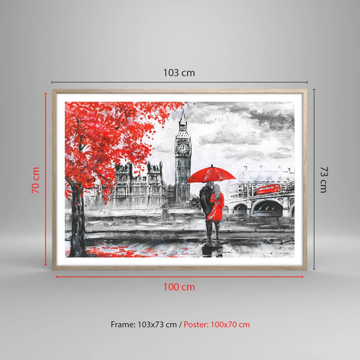 Plakát v rámu světlý dub - Zamilování do Londýna - 100x70 cm