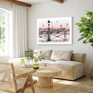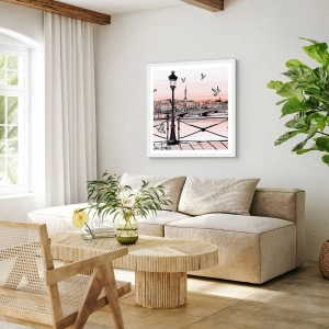 Plakát v bílém rámu - Nad střechami Paříže - 40x40 cm