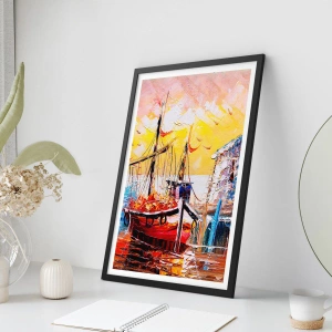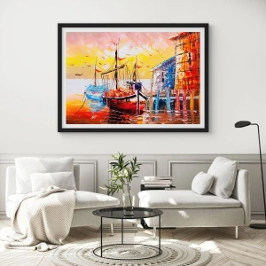 - Tento plakát zobrazuje malebnou loď v přístavu ozářenou září zapadajícího slunce. Jeho zářivé barvy a umělecký styl z něj činí perfektní dekoraci do obývacího pokoje, ložnice nebo kanceláře.