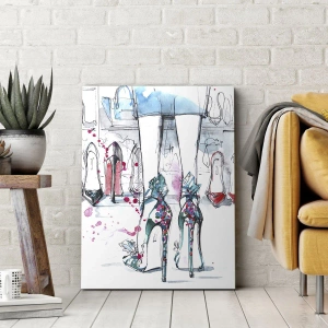 Plátno „Umělecký obraz s botami na vysokých podpatcích a doplňky“ je jedinečnou nabídkou pro milovníky módy a stylu. Kompozice zobrazuje kolekci elegantních bot na vysokých podpatcích obklopených stylovými doplňky, jako jsou kabelky a šperky, uspořádanými na pozadí moderního šatníku.