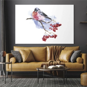 Nástěnný obraz - Zima v barvách - Pták na větvi jeřábu