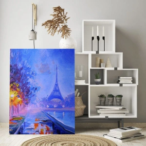 "Procházka snů" je atmosférický obraz, který zachycuje kouzlo večerní Paříže. V popředí vidíme barevné stromy osvětlené pouličními lampami, které osvětlují cestu vedoucí k řece. V pozadí dominuje majestátní Eiffelova věž, vznášející se v jemné mlze, která dodává kompozici romantiku a tajemno. Odrazy světla ve vodě vytvářejí jedinečný efekt, který dodává celé scéně hloubku a harmonii.