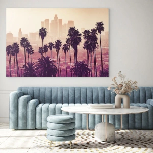 Motiv kalifornské krajiny s palmami a panoramatem města je kombinací přírody a městské elegance. Tento obraz vnáší do interiérů pocit tepla, klidu a nádech luxusu, inspiruje k zamyšlení a snění.