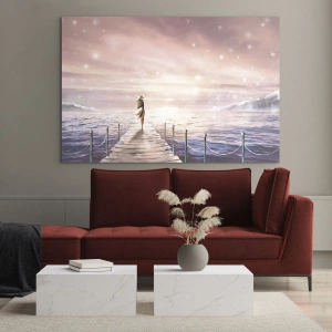 • Okouzlující obraz zobrazující ženu na molu v pastelových odstínech západu slunce. Dokonalá interiérová dekorace, která vnese harmonii, jemnost a romantickou atmosféru do obývacího pokoje, ložnice nebo relaxačního prostoru.
