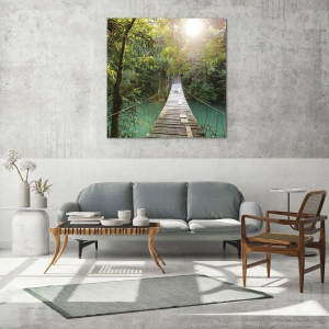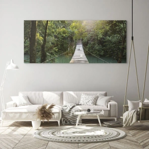 Obraz na skle - Nad azurovou vodou do azurového lesa - 50x70 cm