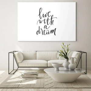 Obraz na skle - Citát „Žít se snem“ v elegantní kaligrafii - 70x50cm - Of course - Moderní nástěnná dekorace do obývacího pokoje a ložnice ARTTOR