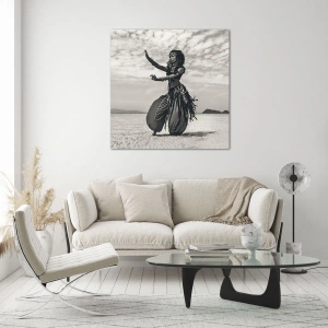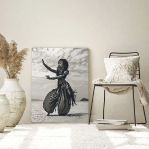 Obraz na skle - Černobílá fotografie tanečnice v poušti - 70x50cm - Tanec jižních ostrovů - Moderní nástěnná dekorace do obývacího pokoje a ložnice ARTTOR