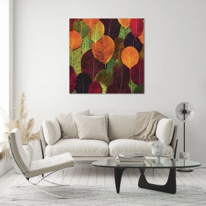 Nástěnný obraz - Podzimní mozaika - Barevné podzimní listí v uměleckém aranžmá