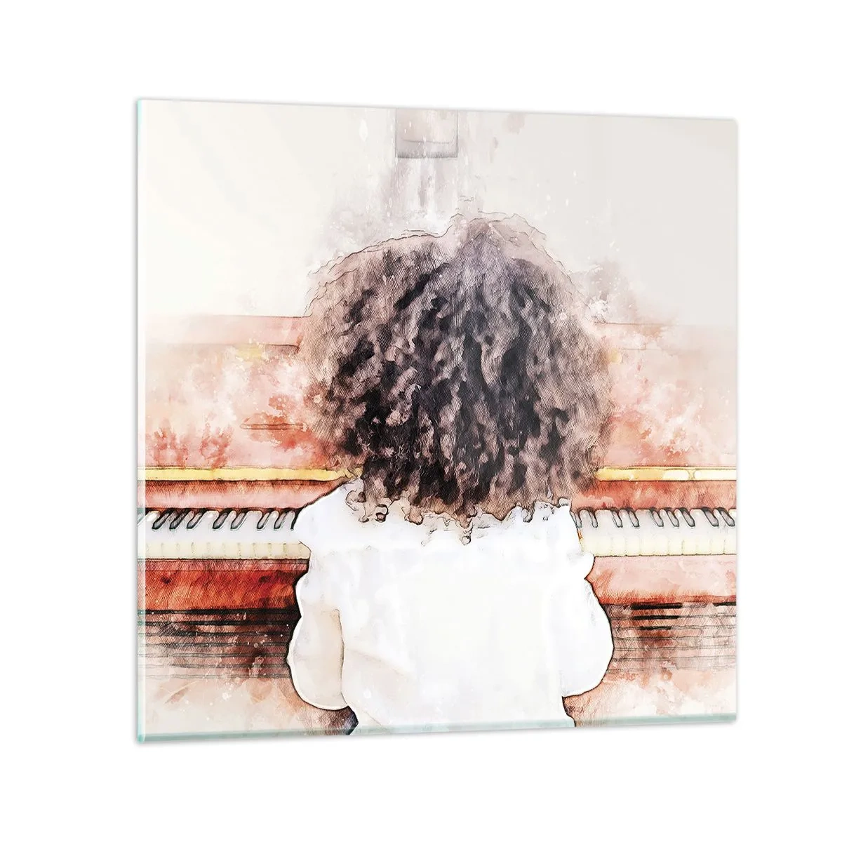 Obraz na skle je vyrobený ze skla o tloušťce 4 mm. Hrany skla mají matný lichoběžníkový výbrus. Obraz bezpečný na používání a připravený k zavěšení – má kovové závěsy upevněné na zadní straně obrazu a pěnové distanční podložky regulující rovnoměrnou vzdálenost obrazu od stěny.