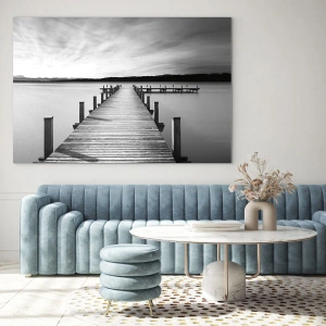 Tento skleněný tisk je vynikající volbou pro ty, kteří hledají decentní, ale zároveň výraznou dekoraci na zeď. Přítomnost prvků, jako je jezero, molo a linie horizontu, vytváří atmosféru meditace a pocit zamrzlého času. Bez ohledu na styl interiéru tento tisk dodá hloubku a eleganci. Je to návrh pro ty, kteří chtějí svůj prostor naplnit nejen krásou přírody, ale také emocionální hodnotou jednoduchosti a ticha. Díky své všestrannosti může být tento tisk ústředním bodem interiérového designu nebo decentním pozadím pro další dekorace. Jeho přítomnost prostoru nedominuje, ale harmonizuje s ním a vytváří harmonický celek. Minimalistická estetika v kombinaci s hlubokým poselstvím z něj činí nadčasový návrh – nezávislý na měnících se trendech a stylech. Je to dokonalý příklad toho, jak se most může stát metaforou života, voleb a cest, kterými se vydáváme.