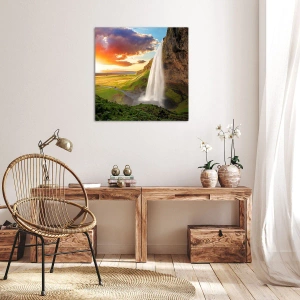 • Krajina, Vodopád, Island, Krajina, příroda, cestování, Do kanceláře, Do pracovny, Do jídelny, Do koupelny, Do předsíně, Do obývacího pokoje, Do ložnice, Hnědá, zelená, barevná, Svislý