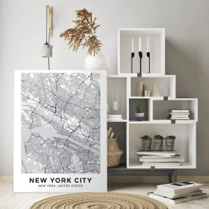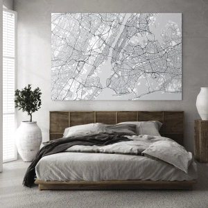 Motiv města byl vytvořen s důrazem na detail. Protínající se linie ulic a jasně definované čtvrti vytvářejí uspořádaný rytmus, který přitahuje oko a vybízí k prozkoumávání. Obraz zobrazuje pohled na město s výrazným urbanistickým uspořádáním, které může připomínat jednu z největších světových metropolí. Tento typ dekorace si často vybírají ti, kteří se zabývají architekturou, designem, nebo prostě ti, kteří oceňují minimalismus.