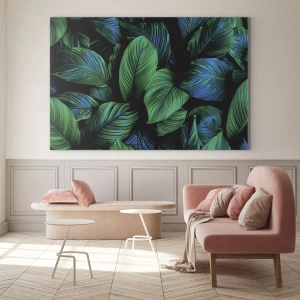 • Tento obraz je plný hustých zelených listů v sytých odstínech a výrazné textury. Tropická kompozice, která dodá každému interiéru svěžest, klid a přírodní kouzlo.