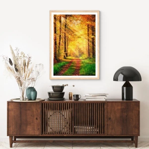 Plakát v rámu světlý dub - Lesně-zlaté ticho - 50x40 cm