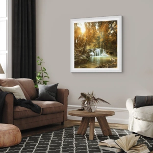 Plakát v bílém rámu - Parkový vodopád - 50x50 cm