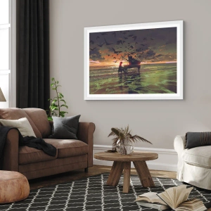 Plakát v bílém rámu - Koncert na piano a vlny - 91x61 cm