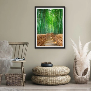 Plakát v černém rámu - Cesta bambusovým lesem s osvětlením - 50x70cm - Esence asijské přírody - Moderní nástěnná dekorace do obývacího pokoje a ložnice ARTTOR