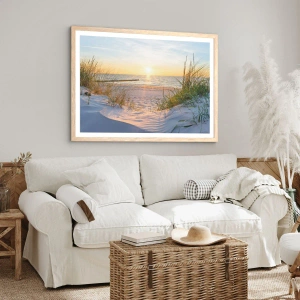 Plakát v rámu světlý dub - Šumění moře, zpěv ptáků, divoká pláž uprostřed trávy… - 91x61 cm