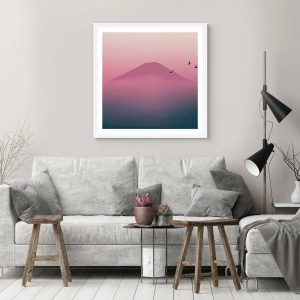 Plakát v bílém rámu - Poutníci nad oblaky - 40x30 cm