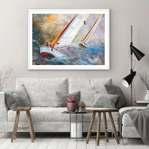 Plakát v bílém rámu - Běžící přes vlny - 40x30 cm
