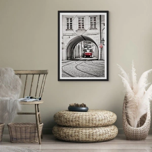• město, tramvaj, Praha, Architektura, Černá a bílá, Města, Automobilový průmysl, Vintage a retro, Do kanceláře, Do pracovny, Do jídelny, Do předsíně, Do obývacího pokoje, Do ložnice, Šedá, černá a bílá, Vodorovný