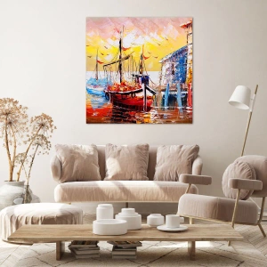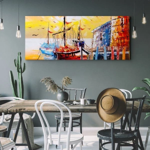 Malebná krajina přístavu při západu slunce je perfektní volbou pro ty, kteří oceňují umění inspirované přírodou a atmosférické dekorativní motivy. Tento obraz vnáší do interiéru atmosféru relaxace a klidu a zároveň dodává teplo a jedinečný styl. Odrazy světla a stínů na vodě dodávají kompozici hloubku a činí ji ještě výraznější.