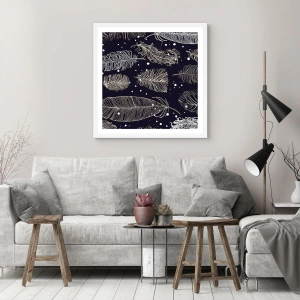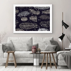 Plakát v bílém rámu - Krajka s peřím - 100x70 cm