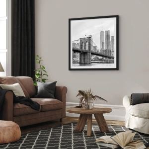 - Tento monochromatický plakát zobrazuje Brooklynský most. Je ideální do elegantních a moderních interiérů a má černý rám.
