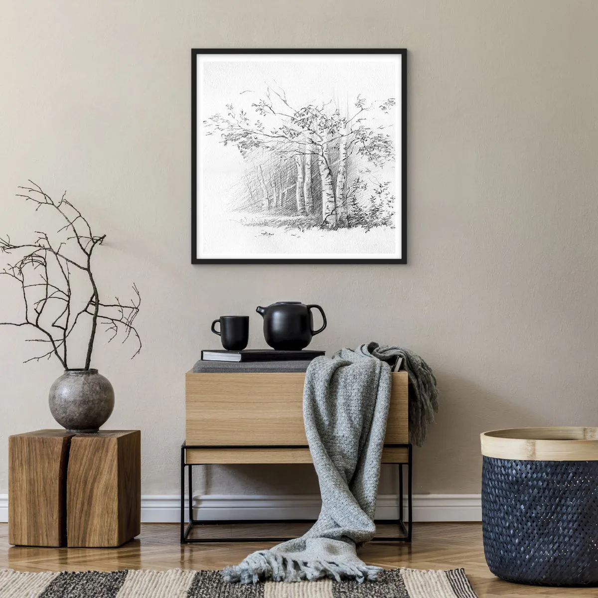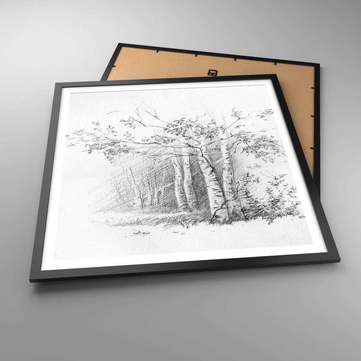 Plakát v černém rámu - Světlo březového lesa - 60x60 cm