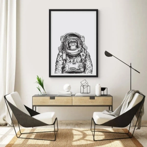 Plakát v černém rámu - Opice ve skafandru na bílém pozadí - 50x70cm - Alternativní vývoj - Moderní nástěnná dekorace do obývacího pokoje a ložnice ARTTOR