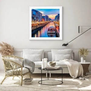 Plakát v bílém rámu - Večer plný světla a zábavy - 40x40 cm
